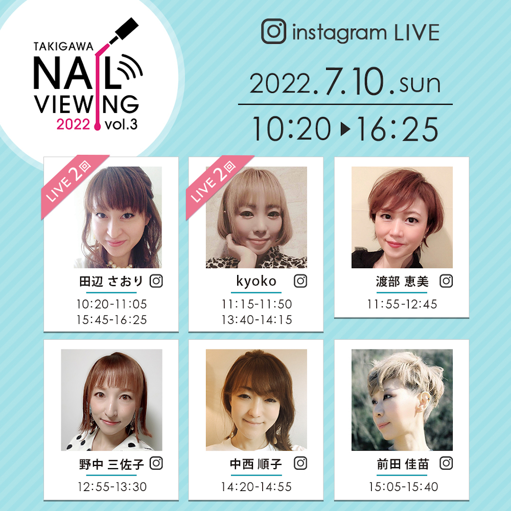 通常であれば会場でしか見られないデモステージの内容をオンラインでも楽しめる内容となっている。さらに7月12日~7月27日までの間、タキガワネイルストア(tnail.jp)ではイベント価格にて商品を特別販売するという。