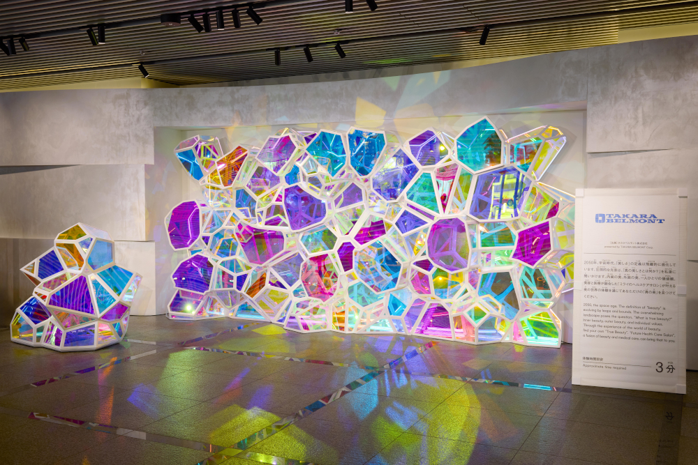 大阪・関西万博開催期間中、人気を博した「大阪ヘルスケアパビリオン」にて出展参加した同社ブースの展示名。2050年、宇宙時代“宇宙での暮らし”を見据えた事業が拡大し、同社が扱う“美しさ”の考え方=固定概念も大きく飛躍しているかもしれない―。そんな問いをベースに、展示ブースのコンセプトは、「Quantum Leap for Beauty World~量子飛躍する美の世界へ~」に決定。同コンセプトをもとに、美容と医療を融合した「ミライのヘルスケアサロン」がかなえる美の世界の展示とデジタルコンテンツ(約12万部配布)を用いて、来館者とともに、宇宙時代の「真の美」を考えた。