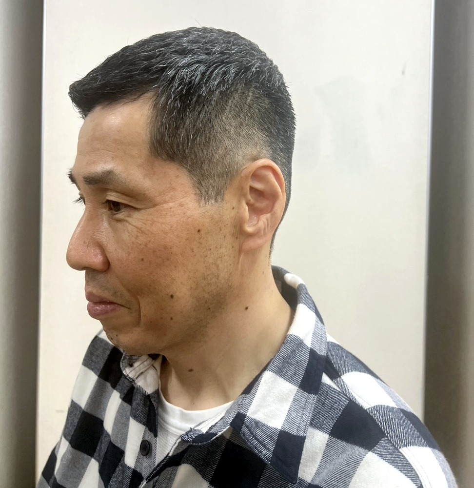 カットはフェードベースで、ロースタイル。クリッパーを入れ、サイドの張りを意識しながらフォルムを構築。続く質感調整ではヒカリFADER THINNINGを用い、部位ごとの梳き率をコントロールしながら繊細な仕上がりへと導いた。中でも、仕上がりの立ち位置から逆算してトップをカットするアプローチは、完成形を強く意識した技術として印象に残った。
